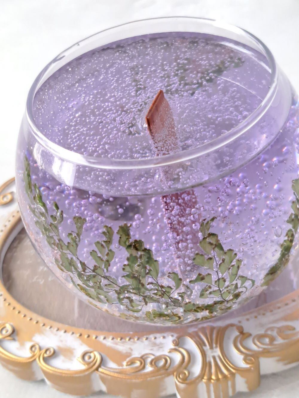 暗いお部屋で火を灯して、ジェルキャンドルならではの気泡のきらめきをお楽しみください。